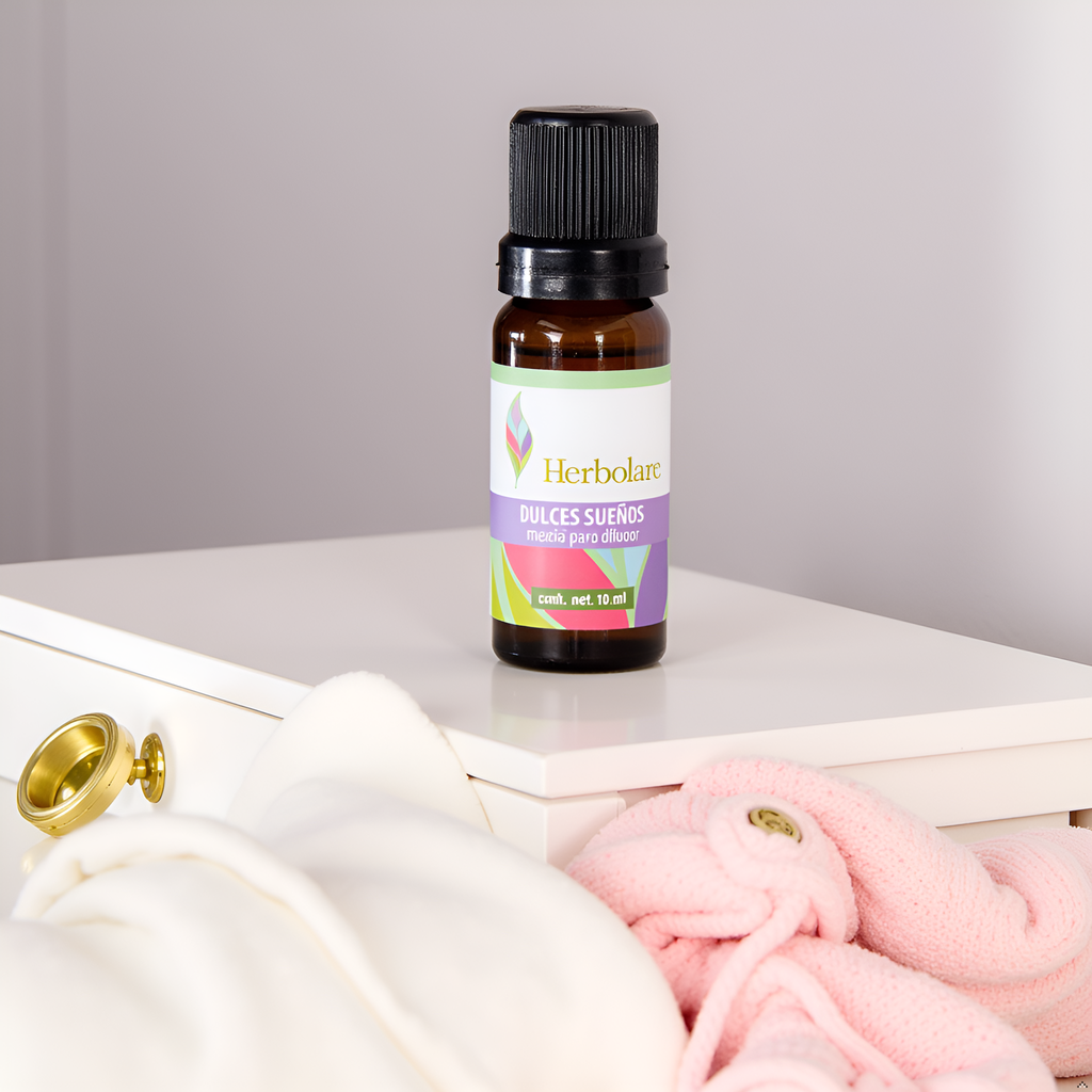 La mezcla Dulces Sueños de Herbolare combina aceites esenciales 100% puros de toronja rosa, lavanda, bergamota, salvia y mandarina para crear una atmósfera cálida y reconfortante. Ideal para usar antes de dormir, esta sinergia relaja el sistema nervioso, alivia tensiones y prepara la mente y el cuerpo para un descanso profundo y reparador.