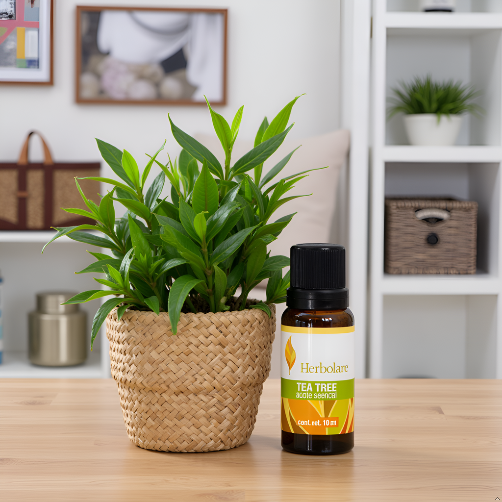 Descubre el poder purificante del aceite esencial de árbol de té (Tea Tree) Herbolare, 100% puro y de origen australiano. Extraído de la planta Melaleuca Alternifolia, es ampliamente reconocido en el mundo de la aromaterapia y cuidado personal por sus propiedades antisépticas, calmantes y purificantes.